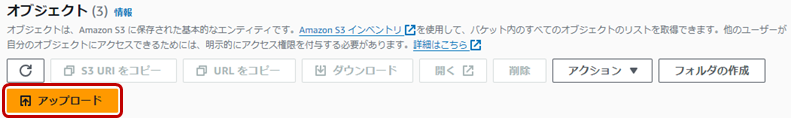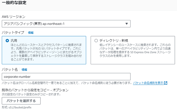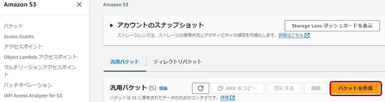 ② Amazon S3に汎用バケットを新規作成し、ダウンロードしたCSVファイルをアップロードします。