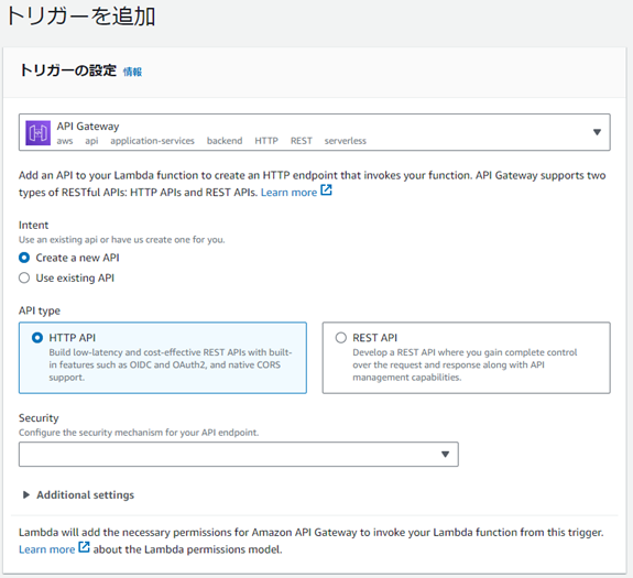 ③ ダイアグラムにある「トリガーを追加」でAPI Gatewayを選択します。
